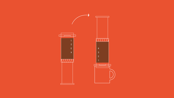 Invert Aeropress. Pre-heat chambers with hot water, and discard.
