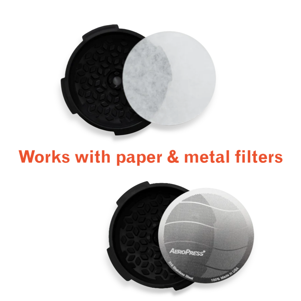 Looking for a new way to brew with the Aeropress? Experimenting with different Aeropress accessories can make brewing much more fun, & really shows off the versatility of the brewer. The Flow Control Filter Cap uses a pressure-actuated valve, this creates a stronger seal for the filter and prevents any dripping. With the seal being stronger, flipping your Aeropress is much easier & less nerve wrecking if you use the inverted method. When using a metal filter, the Flow Control Filter Cap creates more pressure allowing you to create an espresso type crema. The Flow Control Filter Cap can be used with both metal and paper filters.