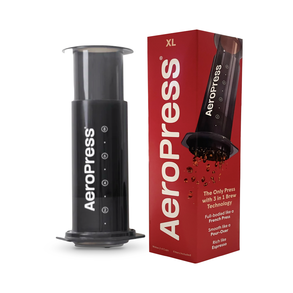 The new supersized Aeropress XL is the larger version of everyone’s favourite brewer. The XL allows you to brew larger batches (up to 600ml) into the conveniently included Tritan carafe. Featuring the same portable design and durability as the original Aeropress, it’s perfect for home, office or travel use.