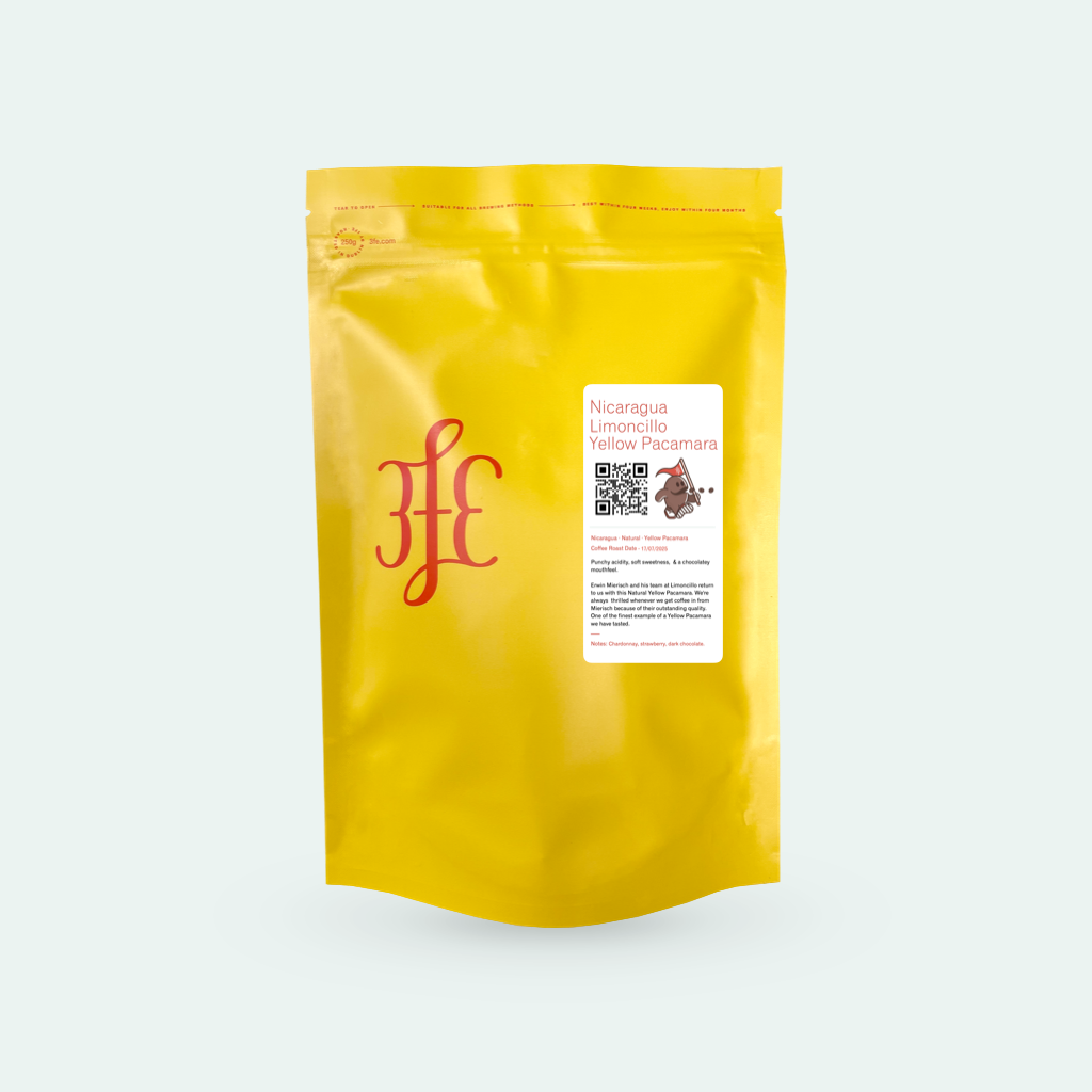 Punchy acidity, soft sweetness, & a chocolatey mouthfeel. Erwin Mierisch and his team at Limoncillo return to us with this Natural Yellow Pacamara. We're always thrilled whenever we get coffee in from Mierisch because of their outstanding quality. One of the finest example of a Yellow Pacamara we have tasted.