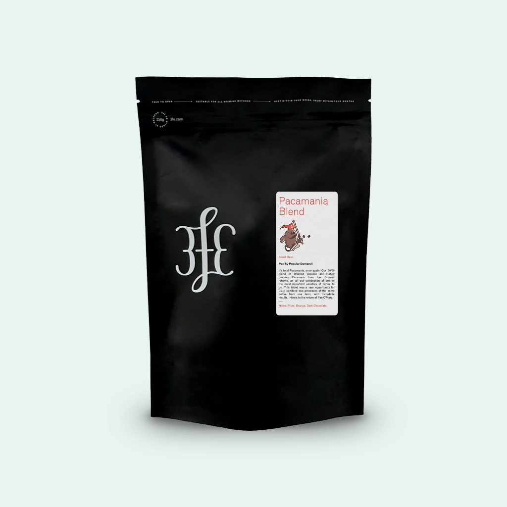 It's total Pacamania, once again! This year, we're going all out featuring all 3 Pacamara processes from Las Brumas. The Washed, Natural, and Honey process Pacamara showcase the versatility of this important coffee variety. This blend was a rare opportunity for us to combine three processes of the same coffee from one farm, with incredible results. Here's to the return of Pac O'Mara!