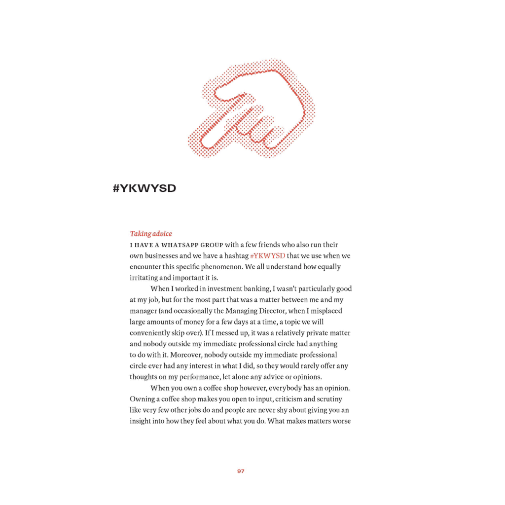 In 2017, he self-published What I Know About Running Coffee Shops as a collection of the lessons he had learned from his journey in the coffee business as a cafe owner. He sold thousands of copies of the book worldwide, with translations into Spanish, Japanese, Ukrainian, Indonesian, Russian and Arabic and other languages published in the following years.